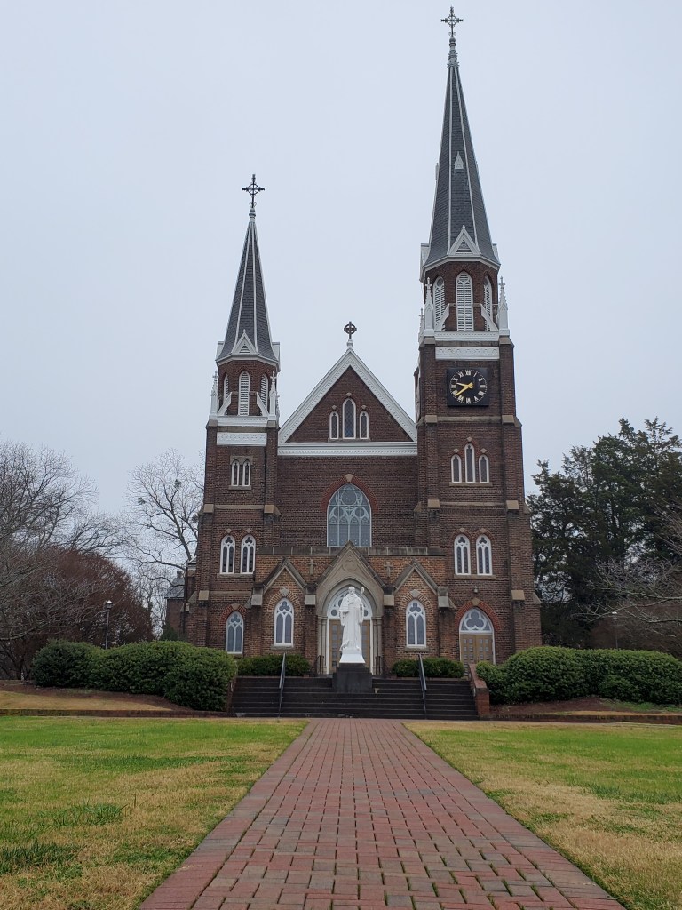 Stop one was St. Joseph’s Chapel in Mountain Island, NC, the oldest Catholic chapel still standing in NC. You’ll find it off of NC-273 near Main St. on your way to Mt. Holly. It’s the fourth Catholic Church built in NC, the first west of Raleigh, and the first in today’s Charlotte diocese. This church was originally built to serve the area’s Irish miners, and underwent a long period of neglect until restoration efforts began in the mid-20th century.