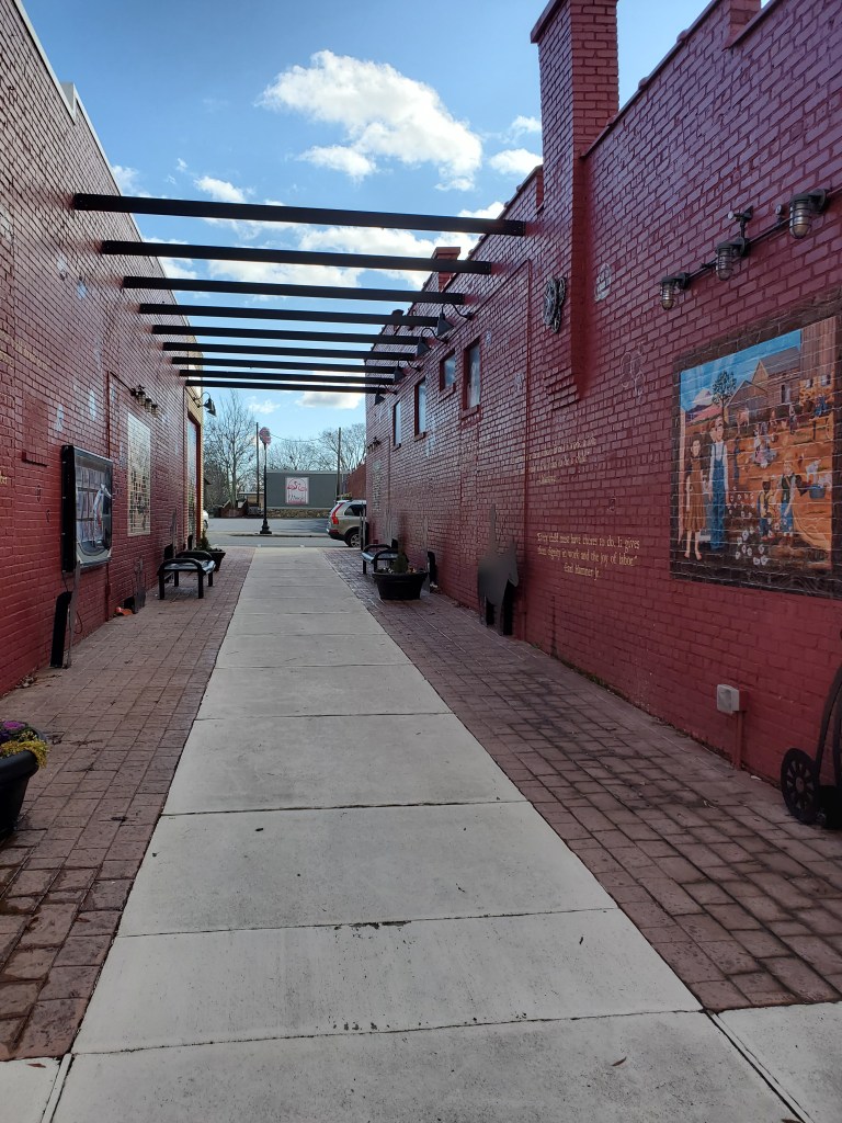 In Dallas, you will find the Gaston County Museum (131 West Main St.), located in the former Hoffman Hotel, which was constructed in 1852 in a simple Greek Revival style. When you step through the doors, notice the amazingly intricate front door assembly–surely original to the structure. The hotel served travelers passing through. You’ll find authentically furnished period rooms, a parlor, changing art exhibits on the third floor, and a gift shop downstairs with many well-priced treasures. (I did some Christmas shopping here.) You’ll also see remnants of the county’s prolific combed yarn mills and photos taken during Gastonia’s mill strikes. The old courthouse is right across the street alongside a newer town gazebo.