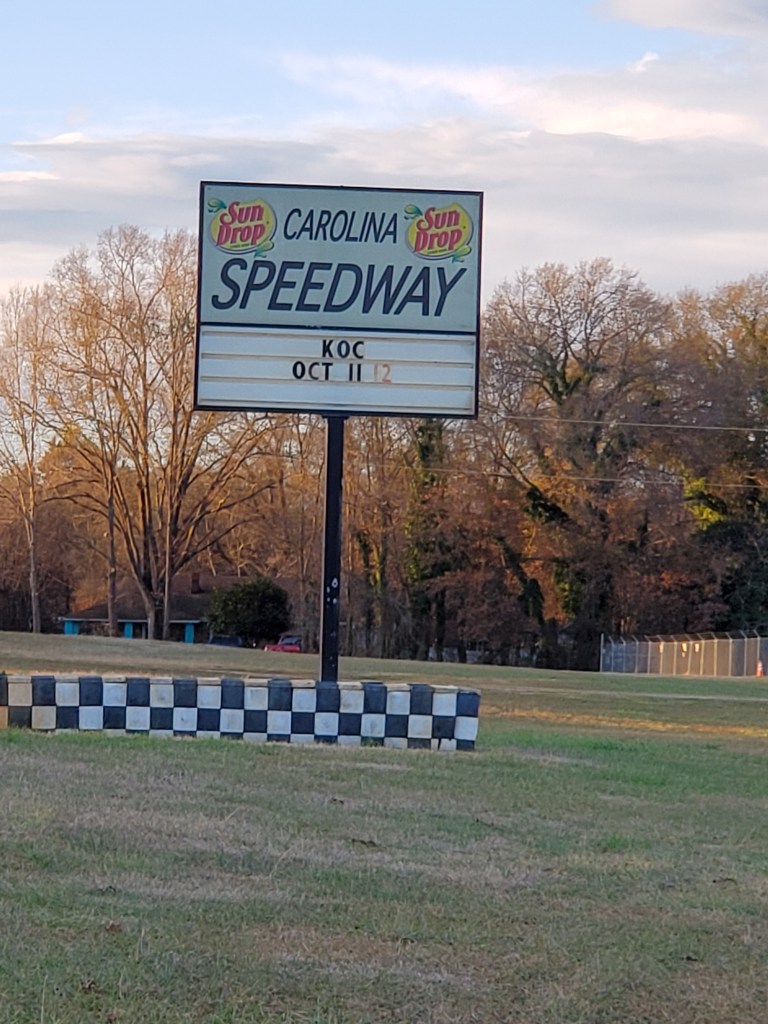 Before heading to the evening holiday light shows, I made one quick stop at Carolina Speedway (6335 Union Rd). Of course, there are no races this time of year, but head by here in the summer and you’re sure to catch the sounds and smells of good ol’ North Carolina dirt track racing at its best on Friday nights. The 4/10-mile track hosts a variety of dirt track cars throughout the season.